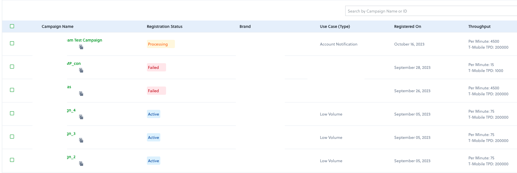 Now you can view all the information you’ve submitted, including the sample messages provided to the carriers. In the event that your campaign is declined, you can see the error code and the reason for rejection. This enhanced visibility simplifies the process of fixing and resubmitting your campaign. Additionally, email alerts will instantly notify you of any status changes.