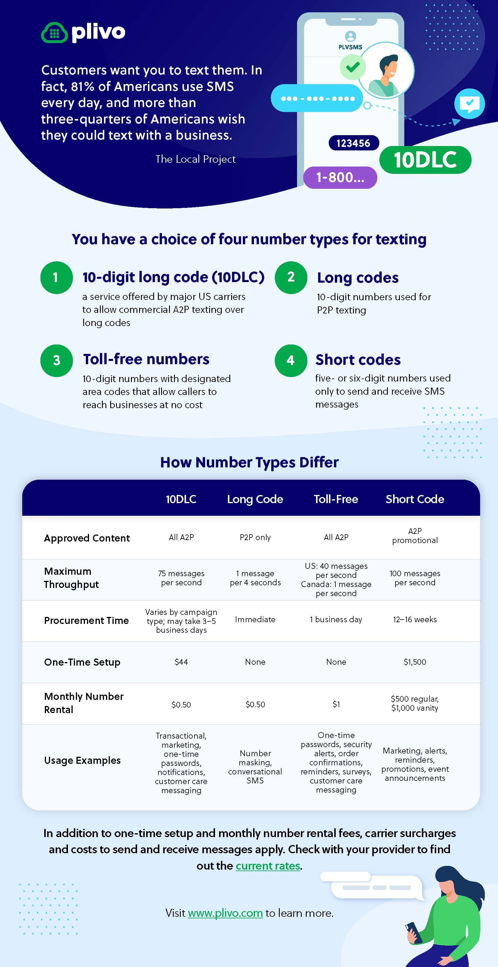 We’ve created an infographic to help you decide what number types might work for your messaging use cases. Download it for reference or share it with colleagues.