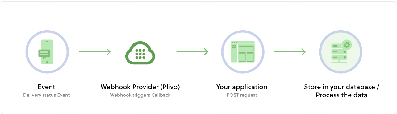 Using Verify APIs, you can send requests to your users through SMS or voice channels. You can use event-based webhooks — user-defined HTTP callbacks — to track the delivery status of your requests. Plivo sends a status update to a URL you configure as a callback. You can store the information on your server for delivery status analysis. To handle a webhook, you must create a listener (web app) that can accept these HTTP requests from Plivo.